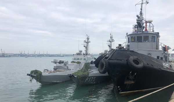 В 06.40 задержанные суда ВМС Украины доставлены в порт Керчь для дальнейшего разбирательства.