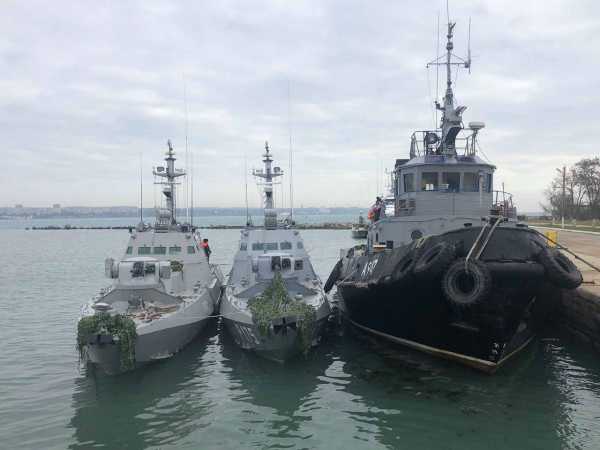 Оба катера и буксир были задержаны в российских территориальных водах у юго-восточного побережья Крыма при попытке осуществить несогласованный с российской стороной проход Керческом проливом из Черного в Азовское море.