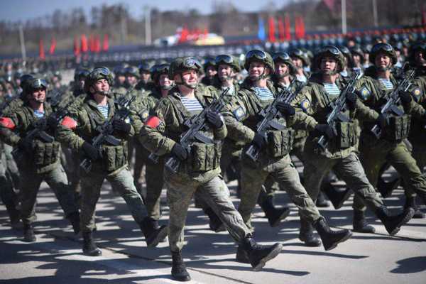 Бойцы Воздушно-десантных войск России готовятся пройти по Красной площади на Параде Победы с новыми автоматами АК-12. Пока же они репетируют на военном полигоне в Алабино.