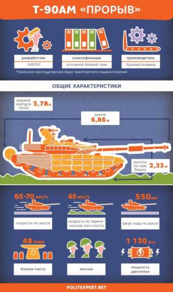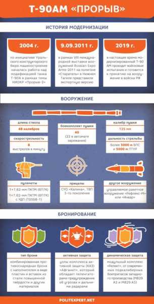 Танк Т-90АМ, более известный как «Прорыв», показали в 2011 году. Произведенная на «Уралвагонзаводе» машина по праву носит это название, поскольку практически все технологии, применяемые при модернизации, являются инновационными. Это касается и ходовой системы, и брони, и вооружения, и средств обнаружения и слежения.