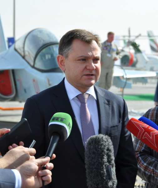 Генеральный директор ПАО «ОАК» Юрий Слюсарь на фоне учебно-боевого самолета Як-130, Dubai Airshow 2019 / Фото: bmpd