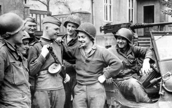 Фирменный металлический кожух с овальными прорезями, который надевался на ствол ППШ, обеспечивал защиту рук стрелка от перегревания. Это приспособление вызывало повышенный интерес у американских солдат: они беспрестанно разглядывали ППШ, когда в конце апреля 45-го произошла знаменательная встреча союзников на Эльбе.